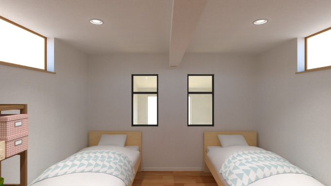 吹抜け側に室内窓を設置し、光を取り込み明るい室内。