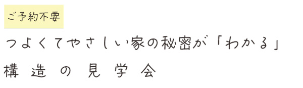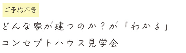 本イベントの“構造の見学会” “コンセプトハウスの見学会”はご予約なしでご見学いただけます。