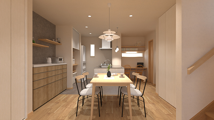 家事らく動線と、すっきりキッチンキッチンとダイニングは横並びで、配膳もらくらく! |