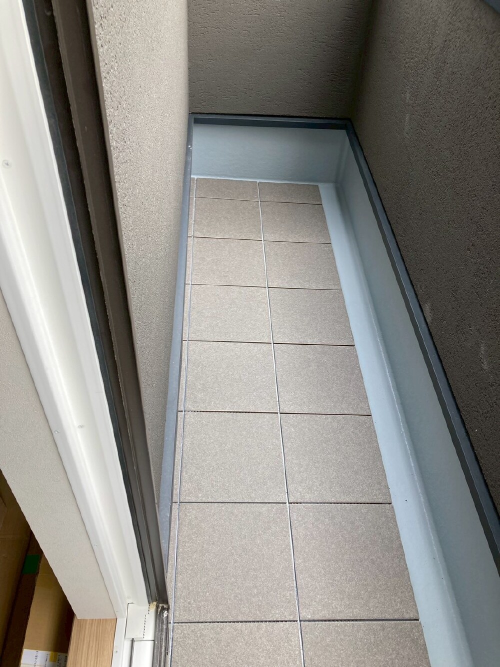 バルコニーの防水施工に続き、タイル施工も完了いたしました!